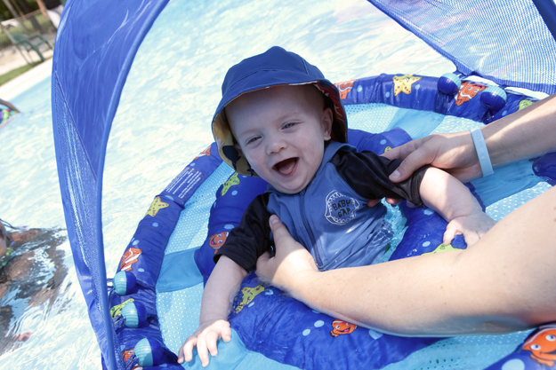 Fitting nicely into his shade float, Cohen enjoyed the water and the attention of his second cousins. He awaits the arrival of his first cousin for next year’s trip.