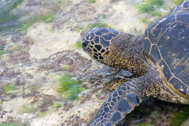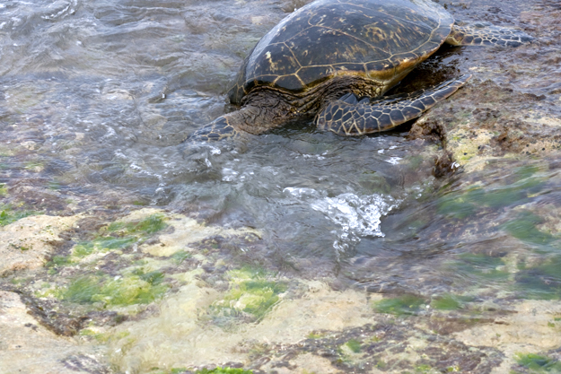 One afternoon we strolled the rocky beach west of the hotel. We learned that just before high tide, Green Sea Turtles could be easily spotted near the shoreline. Sure enough! What a sight to watch.