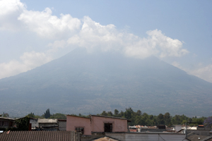 We strolled back toward the hotel. Time was short. I made my way to the top of the hotel and was able to capture the breadth of Agua without the distraction of the wires. My only regret was not getting up before breakfast and catching this shot in an earlier light with fewer clouds. The clouds increase as the day progresses. However, on second look, the clouds may give the impression the volcano is emitting a cloud of smoke.